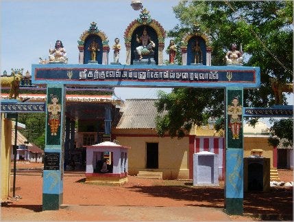 The Karkuvel Kayyanar temple is located near Thiruchendur's famous Murugan temple. The temple is in the Therikudiyiruppu village, near Kayamozhi in Thoothukudi district, Tamil Nadu. This temple is approximately 500 to 1000 years old. The deity here is believed to be very powerful.